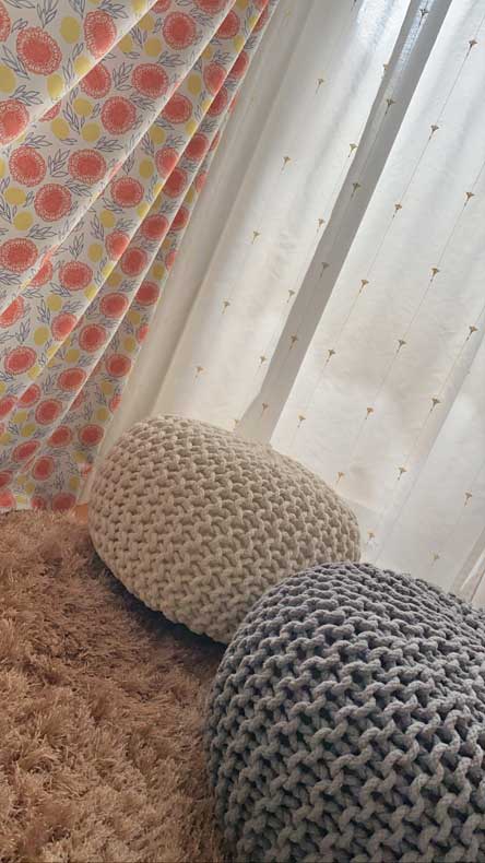 コットン100%の太紐をハンドメイドで丁寧に編み込み、クッション材を入れたプフです