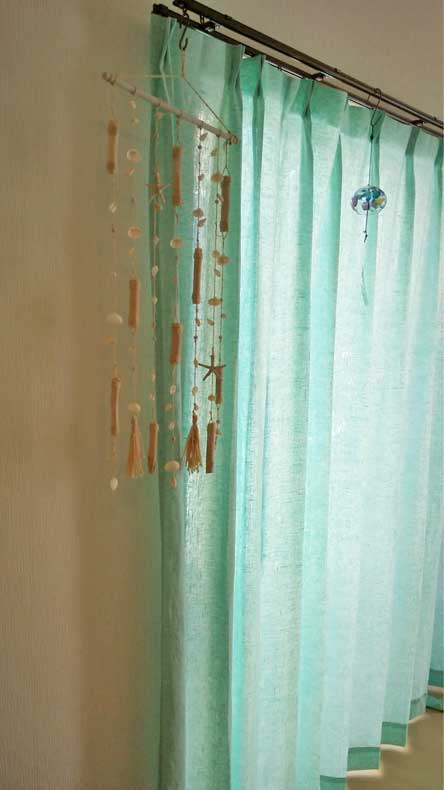 【365lino!pastel style】リネン(麻)100%使用!びっくりカーテンのオリジナルリネンカーテン<パステルリーノ ミントグリーン>※1.5倍ひだ