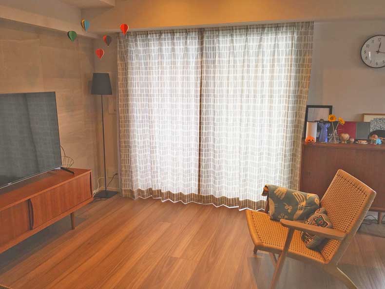 こちらのカーテンは形状記憶加工が施されているのできれいにウェーブが出ていますね♪