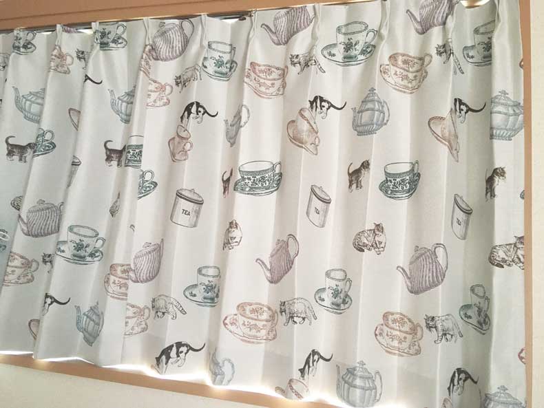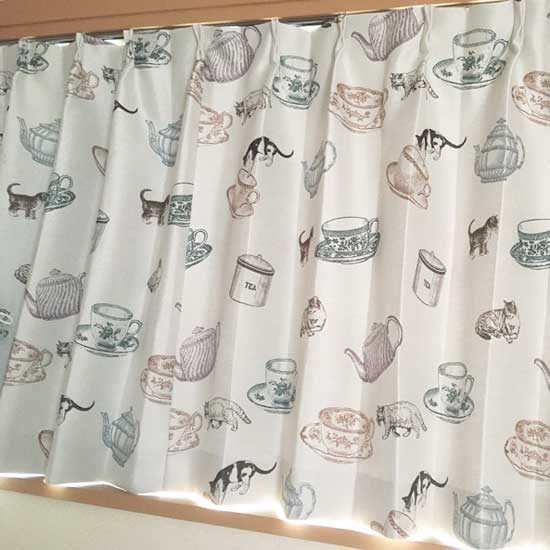 こちらのカーテンは昼下がりの猫ちゃんたちの可愛いしぐさを捉えたデザインです。