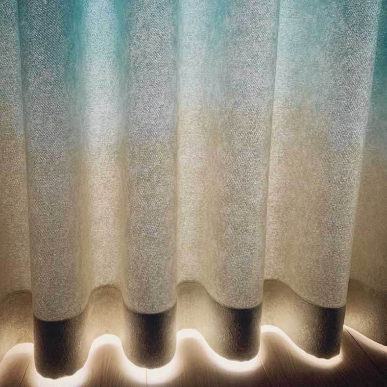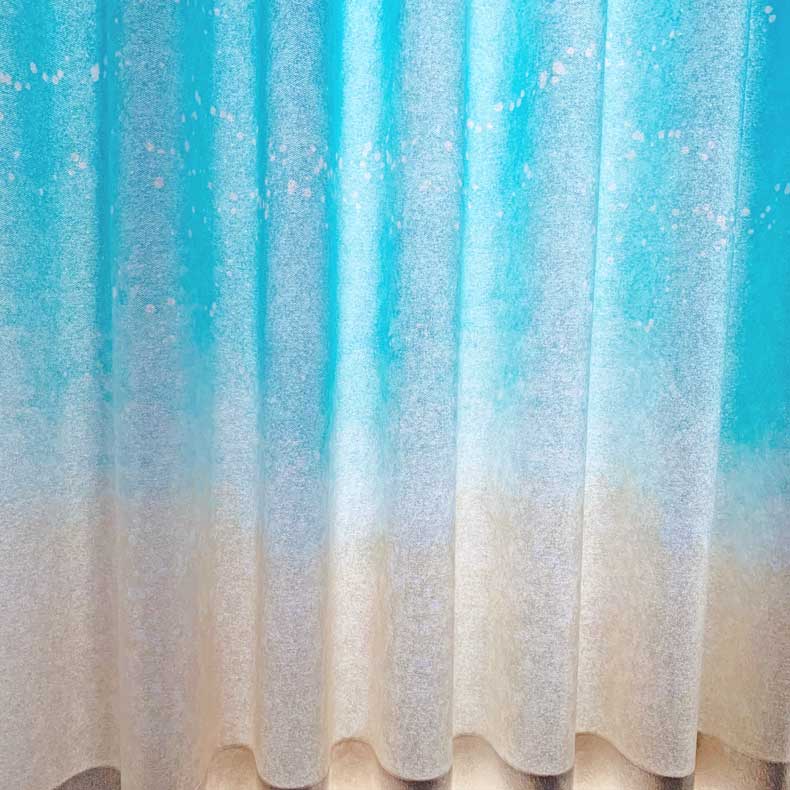 浜辺から少しずつ広がる優しい海のイメージをジャカード+プリントで立体的にデザインされた美しく上質なカーテンです♪