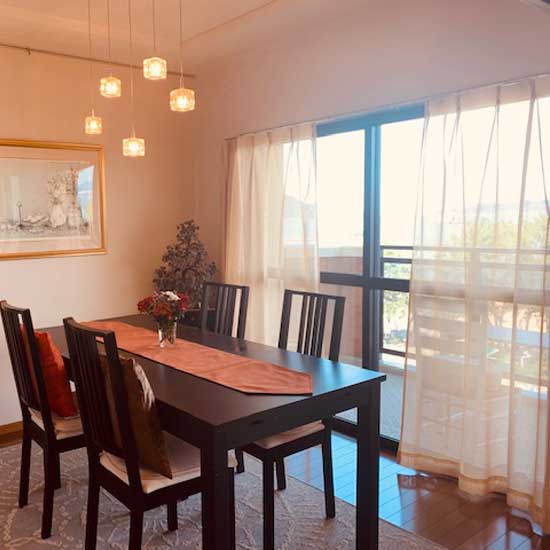 夏に購入したブルー系は、海側の窓にとても映えて素敵な夏を送ることができました。
