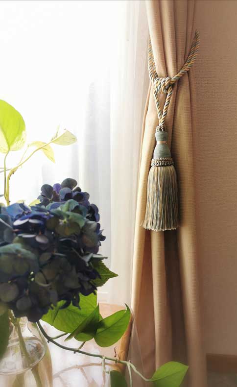 エレガントなカーテンやクラシカルデザインのカーテンにも合わせられる上品なタッセル。