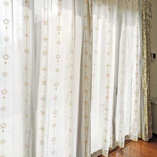 レースのカーテンは、思ったより刺繍が大きく、キラキラととてもきれい!