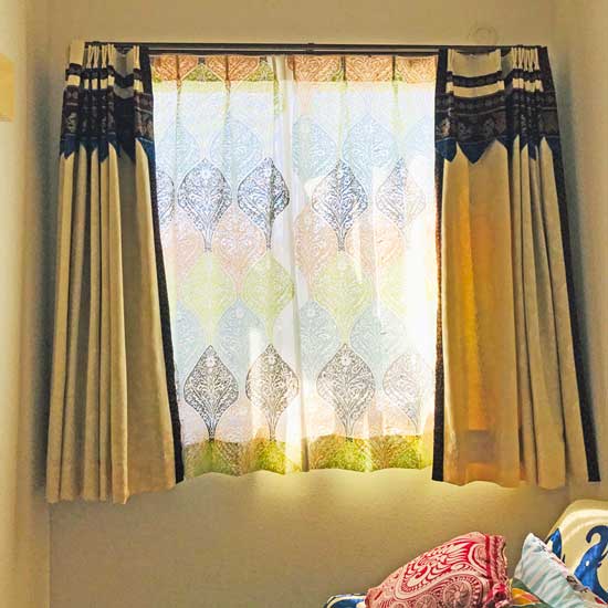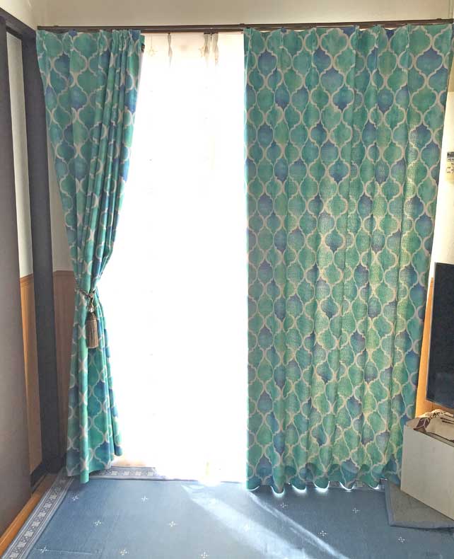 モロッカン柄ブルーの方は程よい遮光で使いやすいですね。明るいブルーも素敵です。