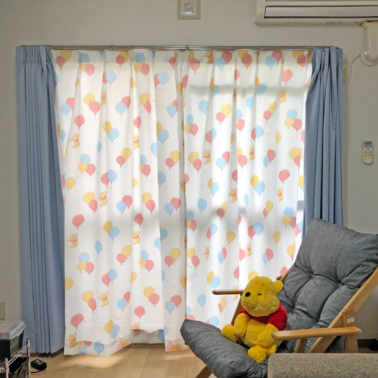 プーさんのバルーン柄のカーテンはとっても可愛く、部屋が明るくなりました。