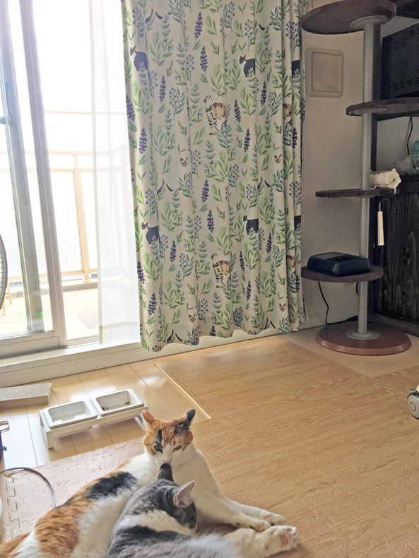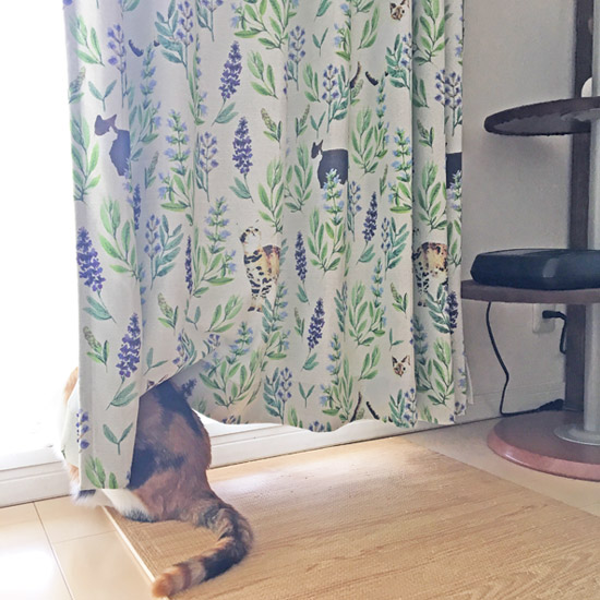 なかなか写真が逆光で明るくなくカーテンメインで猫ちょっとで 上手く撮れず すみません。