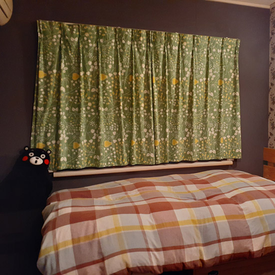 それでカーテンをつける予定の無かった子供部屋の出窓に、丈を伸ばしてつけたのですが、