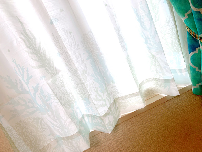 マリンピアシリーズでのコーディネートはもちろんですが、無地のカーテンなどと合わせてお部屋側に
