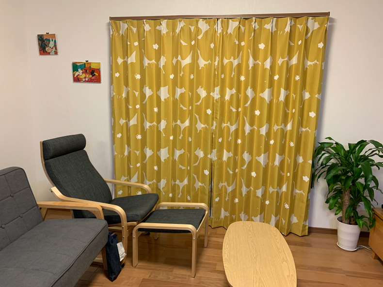今まで茶色のカーテンだったので、一気に部屋が明るくなり家族で楽しい日常がおくれそうです。