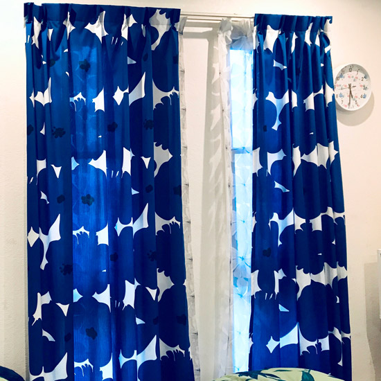 <ポイカ ダークブルー>は光をしっかり取り込む非遮光のカーテンなので