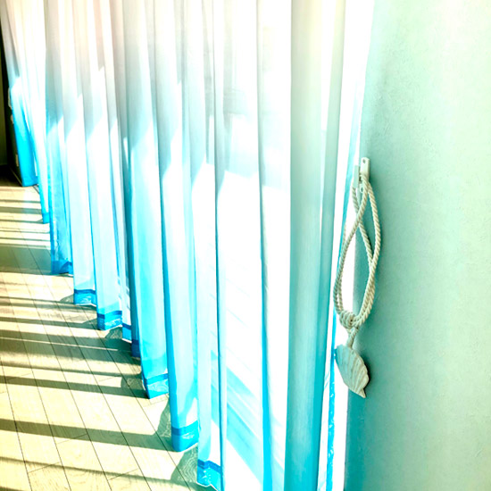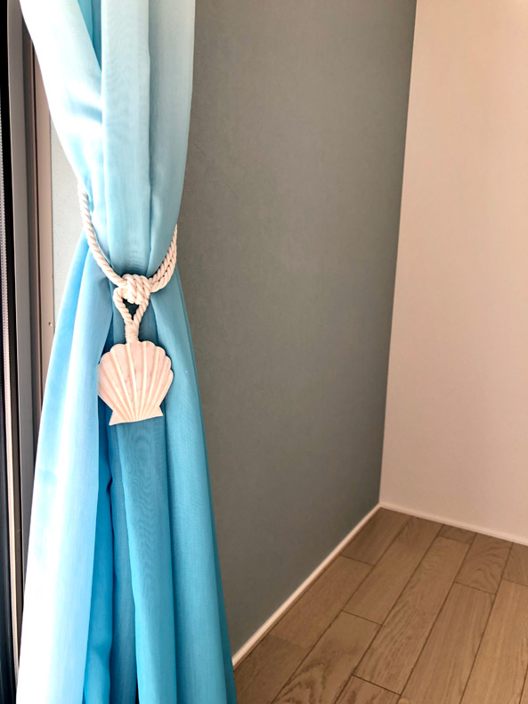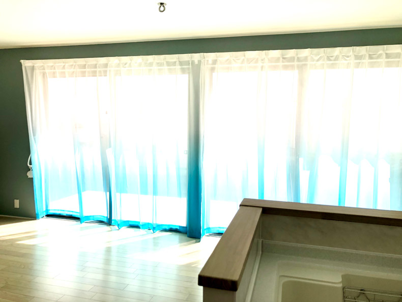 新居のリビングをビーチリゾート風に、また、グラデーションのカーテンが付けたかったので、購入を決めました。