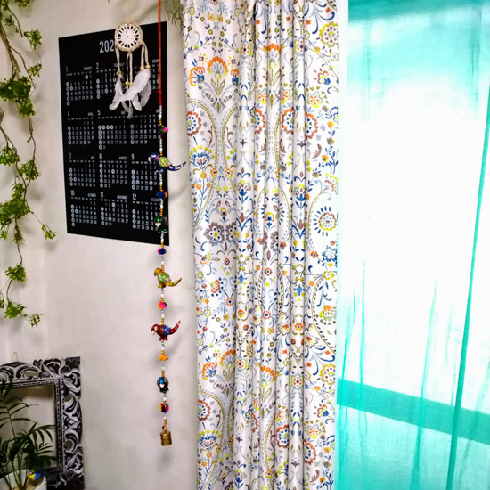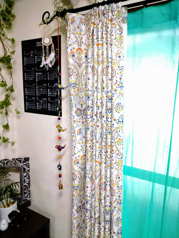 レースのカーテンを色付きにしたので何が合うかすごく悩みました…あっているのかいないのか…