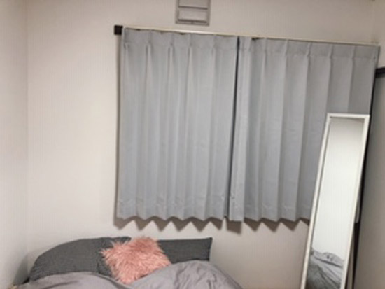 自分の寝室にグレーのカーテンとリビングにチューリップ色のカーテンを買いました