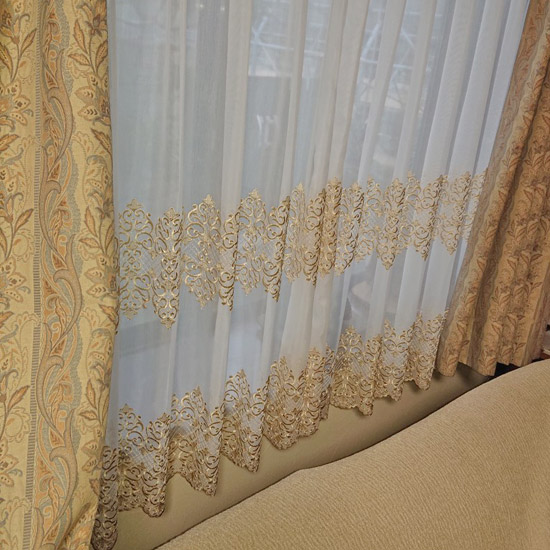 <レジーナ>は当店で人気のトルコ刺繍レースシリーズのカーテン。