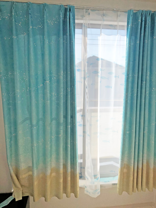 海テイストのカーテンと合わせるもよし、無地カーテンにフロントレースで組み合わせるも良し。