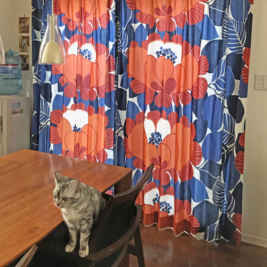 まさにその通りで、大きな柄のカーテンは絵画のようにお使いいただけるのが