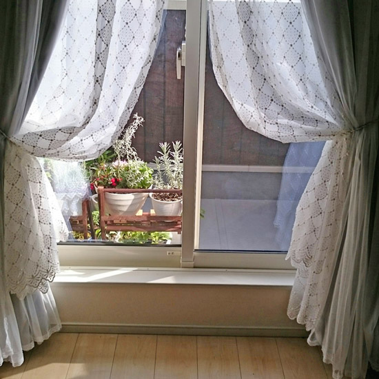 目隠しと採光目的で腰高窓用にレースのカーテンを購入しました。