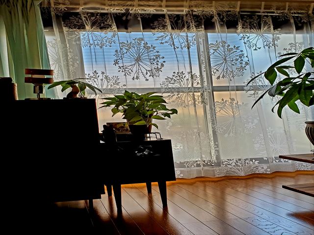 以前購入したカーテンに合わせて白の可愛く浮き上がる柄のレースカーテンは明るい日差しが入りとても綺麗です。