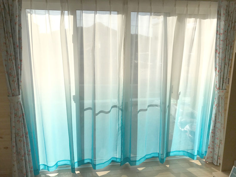またレースカーテンにはグラデーションが美しい<ヴァーグ スカイブルー>を合わせていただいております。