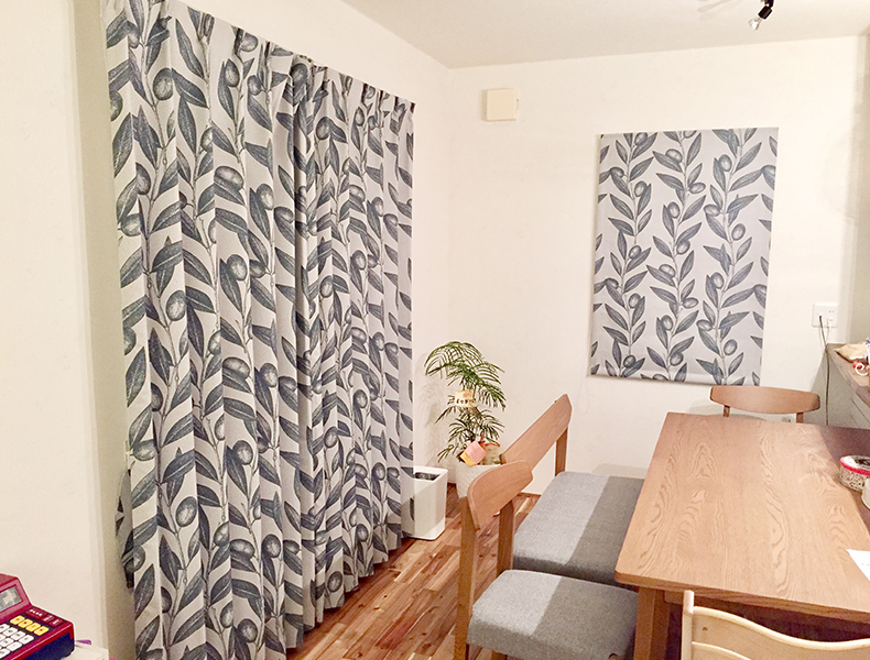 新居のリビングダイニングのカーテンに、いくつかの候補の中から「オリーブベリー」を選びました。