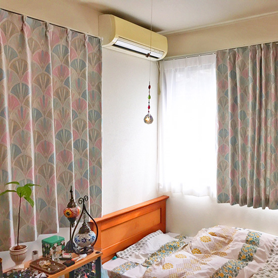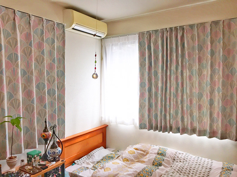 大きい窓が2つある部屋で、カーテンの占める面積が大きいので、なかなかこれというカーテンが見つからず何