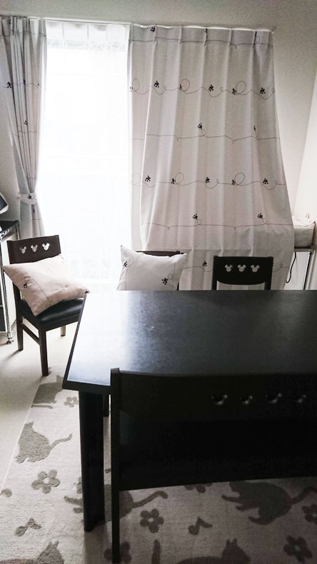 また、ダイニングの椅子も、落ち着いた茶系のミッキーの型抜きです。