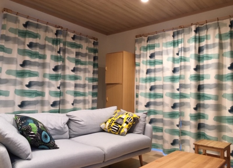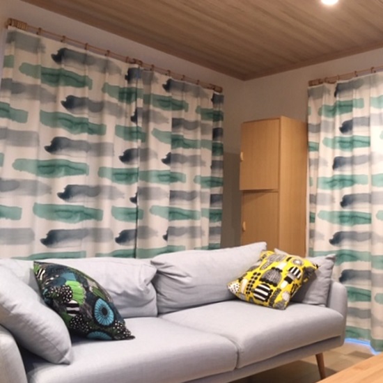 お写真はいただいていないですがご一緒に<hiekka ヒエッカ ブルー>をご購入いただいておりこちらはまだまだカーテンをお作りする事が出来ます。
