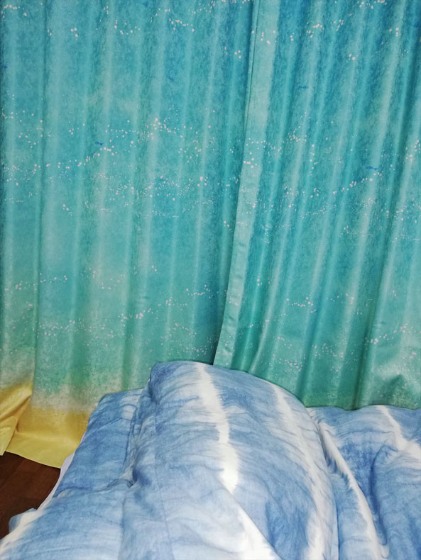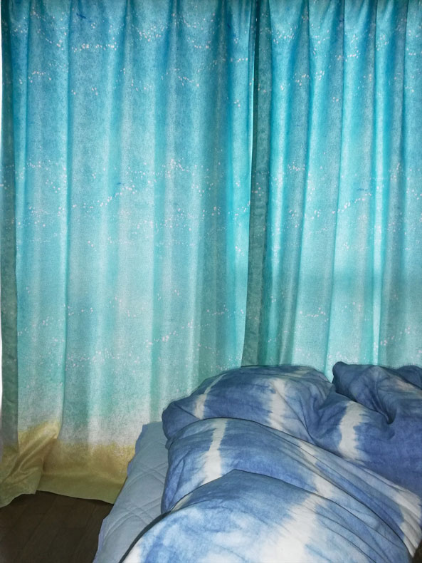 すてきなデザインのカーテンで、世の中のちょっと重くなりそうな雰囲気を少しでも晴らすことができれば良いな・・・と思います。