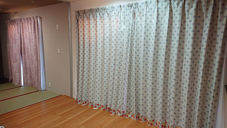お値ごろの価格でサイズ、床色、壁紙とマッチしたオーダーカーテンを手に入れてとても満足してます。