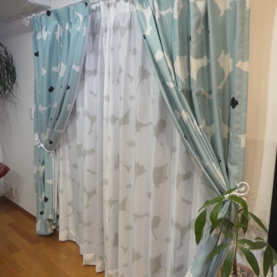 お客様より<テュット ライトブルー><シャイニーベール テュット ペアレースカーテン>の素敵なお写真とご感想をいただきました。
