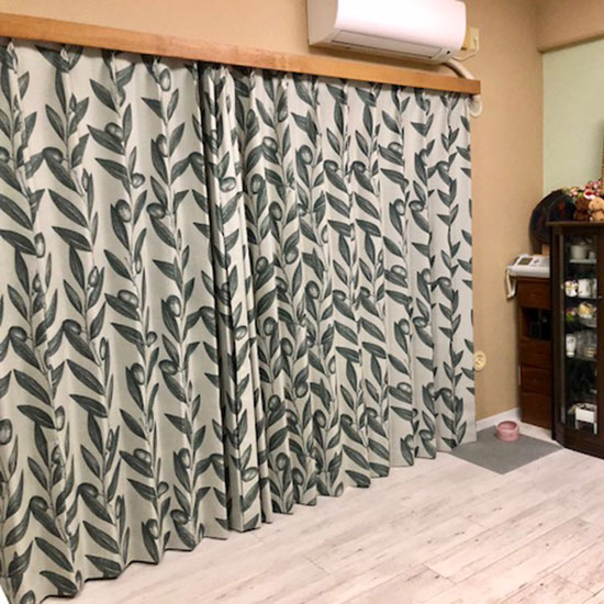 <オリーブベリー>は2級遮光の機能が付いたカーテンで形状記憶も付いていますのでキレイなウェーブがキープできます!