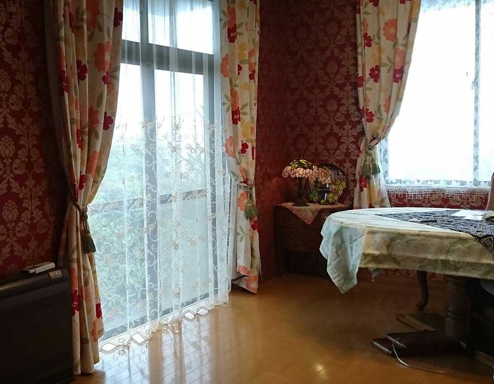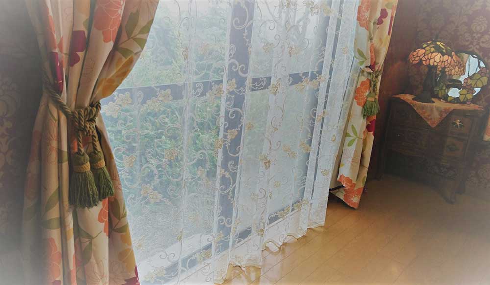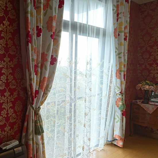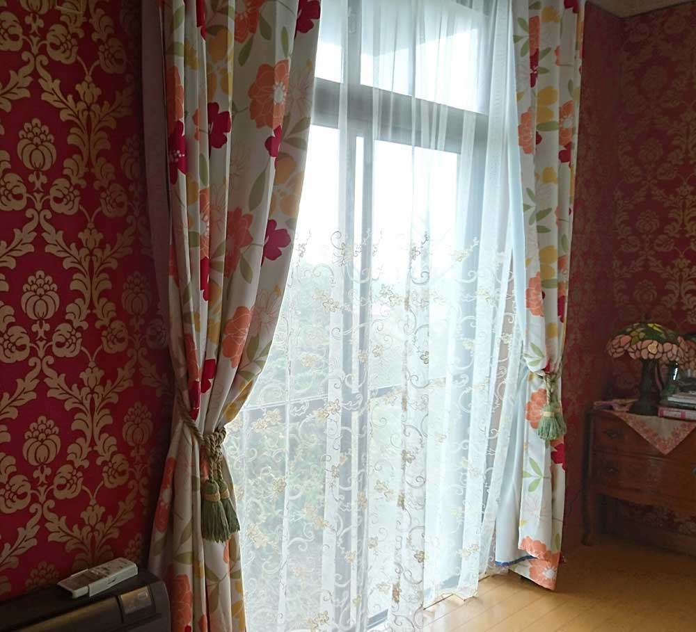お客様のように柄もの厚地カーテンに合わせていただいてもかわいいですし、
