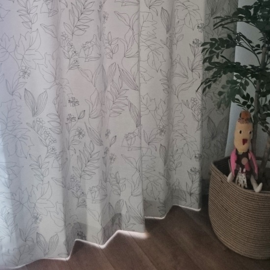 黒とアイボリーのコントラストがお部屋を引き締めてくれるので、無地の単調なカーテンでは物足りない方は是非ご検討ください!!