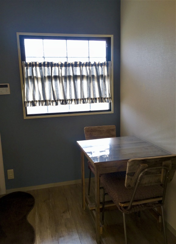 続いて食卓にある窓に何か良いフリルカーテンが無いか探していたところ丁度探し求めていたカフェカーテンが!