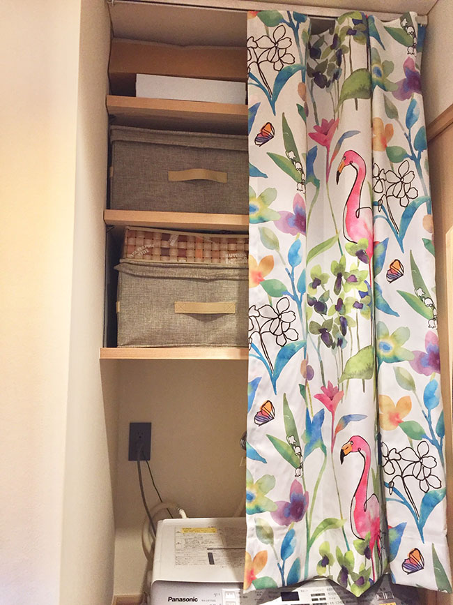 洗濯機の上の棚もスッキリと隠すことができました。