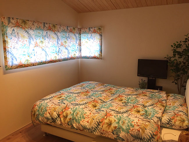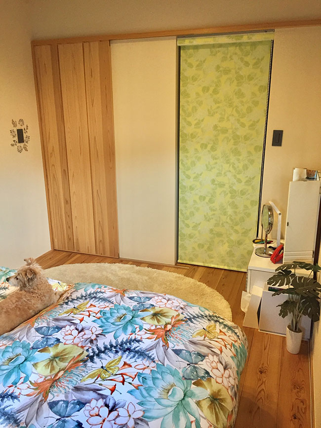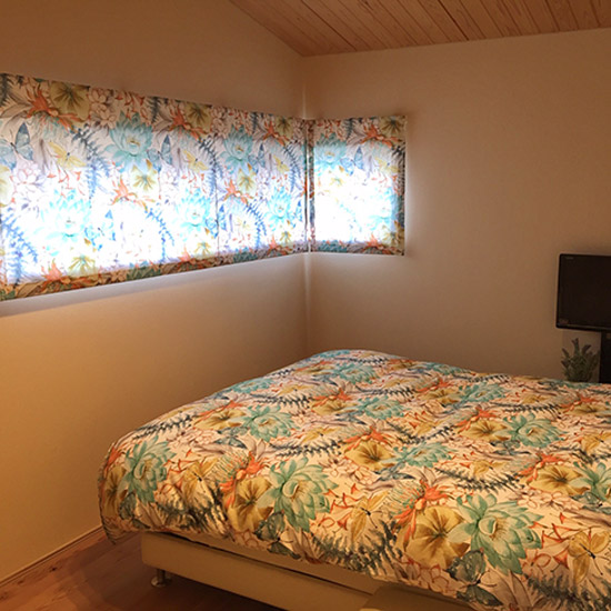 寝室は以前フロラシオンで枕.ベッドカバーを作っていただき、とても気に入りシェードもお願いしました。