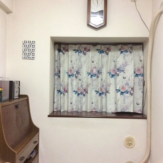パンチュールは、花瓶モチーフで、難しいかなと思いましたが、生地の風合い、淡い色味で何とも優雅で美しいカーテンです。