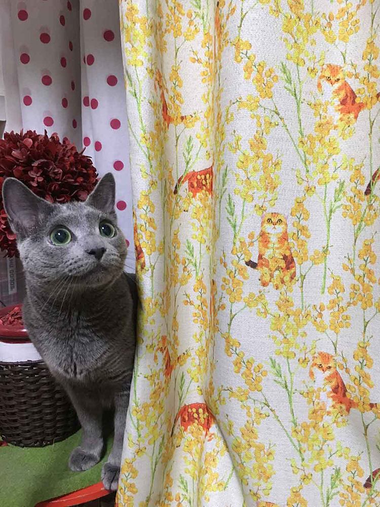 カーテンの間からカワイイ猫ちゃんが!?スグにそちらに目を奪われてしまいました!