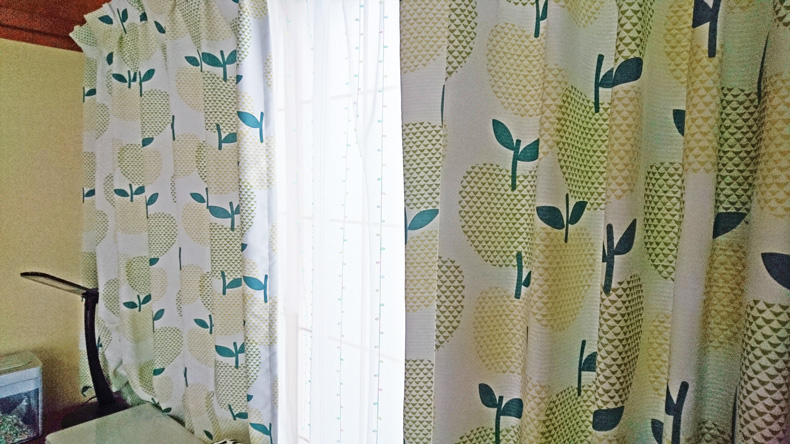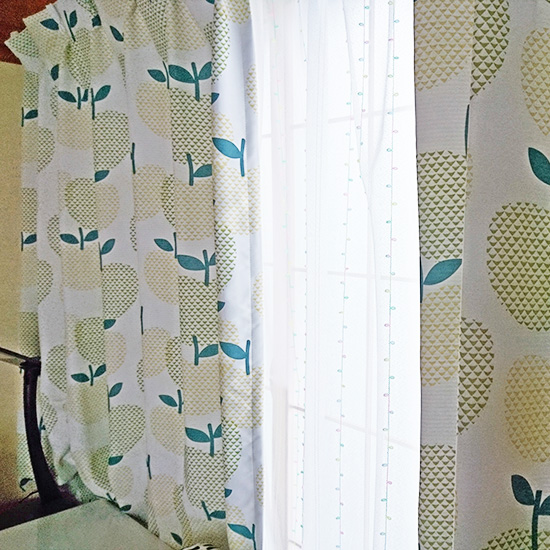 <りんご グリーン>は子供部屋以外でもお使い頂けるようなナチュラルなデザインとなっており、機能も2級遮光でウォッシャブルなので汚れたら洗濯機でジャブジャブ洗っても大丈夫♪可愛いだけじゃない、スグレモノなのです。