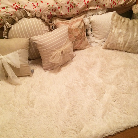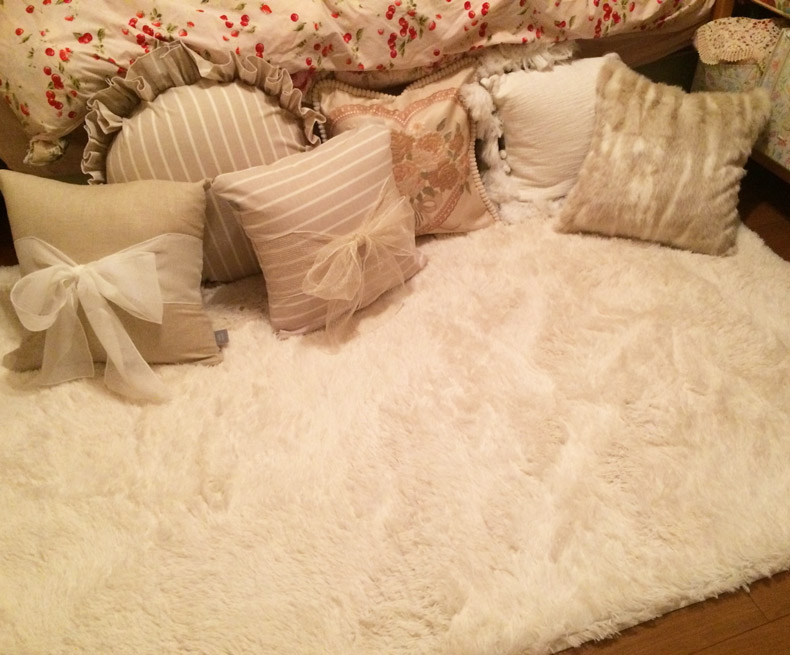 ちなみに、左のリボンがついたクッション2つと、その後ろの丸いクッション、右のフリンジがついたクッショ
