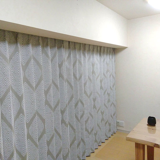<クロワ ベージュ>は3級遮光・形状記憶・ウォッシャブルと機能が豊富な高性能カーテン。