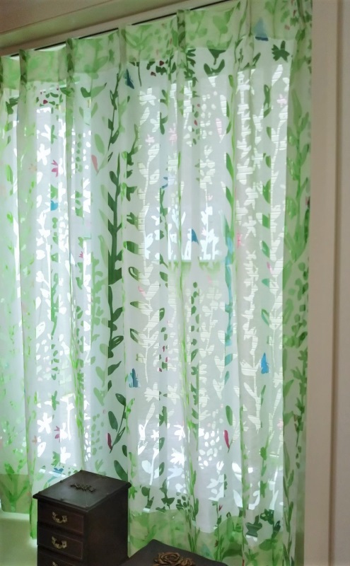 【 greenery -グリーナリー-】オパールプリントで透明感が美しいレースカーテン <レインリーフ グリーン>