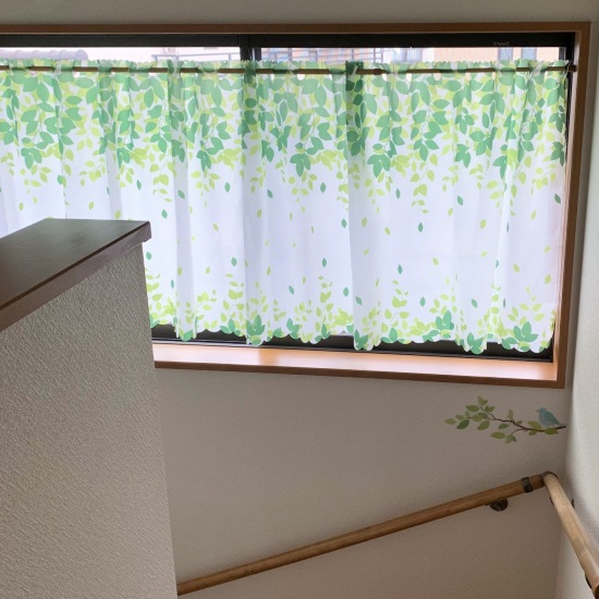 森をイメージした木や花のデザインが可愛いカフェカーテンです
