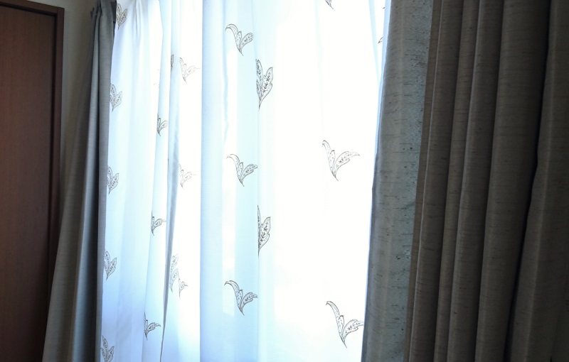 非遮光のカーテンは日差しを受けた時にレースカーテンの模様が浮かび上がったりもするので、