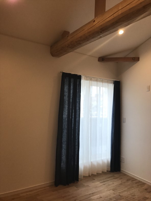 主寝室にお選びいただいた天然素材のカーテンも、ブルーの色がお部屋の中で一つのアクセントになって、新居の雰囲気をより高めているのではないでしょうか。