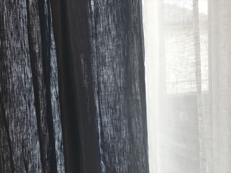 主寝室のカーテンは麻の感じも良くて、シンプルな中にこだわりが見えるお気に入りのカーテンになりました!