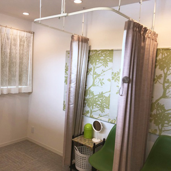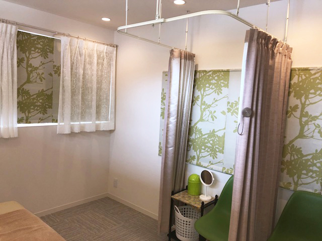 今回、整体室に簡易サウナを入れるにあたりどうしても更衣室が必要で、自宅新築の際にカーテンをお願いした