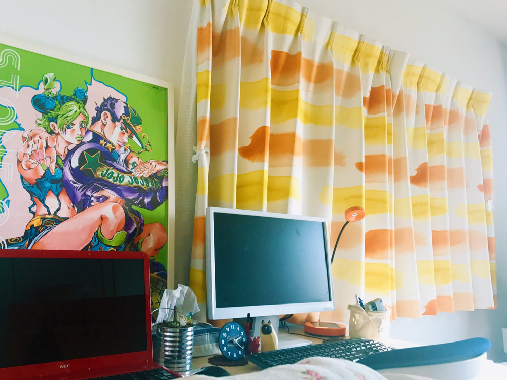 個人的にはカーテンよりもその横のポスターが気になって仕方ない。