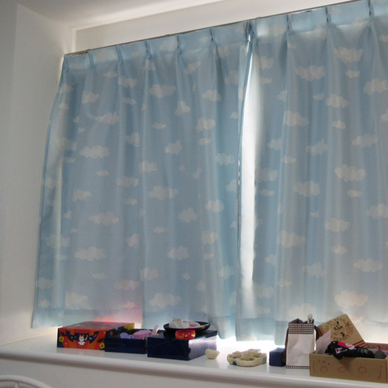 本日届いたカーテン裏地を、2年前に作っていただいた、子供部屋のカーテンに付けてみました。